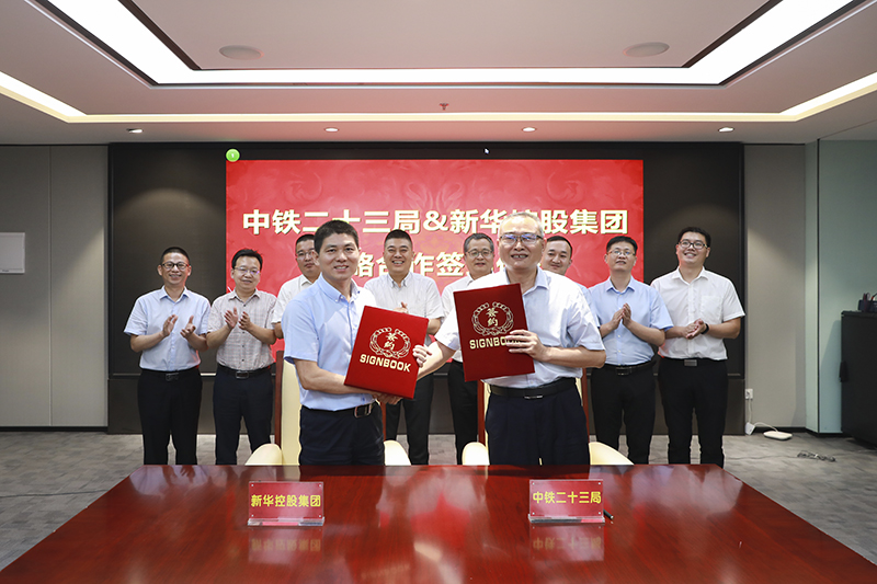2020年7月23日,中鐵二十三局與新華控股集團(tuán)戰(zhàn)略合作簽訂儀式在合肥隆重舉行。中鐵二十三局集團(tuán)黨委常委、紀(jì)委書記、監(jiān)事會(huì)主席李強(qiáng),華中區(qū)域指揮部指揮長(zhǎng)袁勇,新華控股集團(tuán)董事長(zhǎng)吳成柱、副總裁莫曉東等雙方領(lǐng)導(dǎo)和代表出席了本次簽約儀式。雙方就地產(chǎn)、教育、基礎(chǔ)建設(shè)、生態(tài)環(huán)保、產(chǎn)業(yè)基金等領(lǐng)域的合作進(jìn)行了深入交流,達(dá)成了一系列合作。