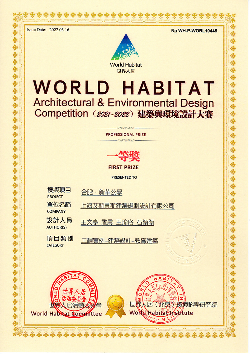 近日,WORLD HABITAT(2021-2022)建筑與環境設計大賽(Berlin Design Awards)于世界人居官方網站公布了獲獎名單,新華公學校園建筑一舉斬獲「2021-2022建筑與環境設計大賽專業組」一等獎。