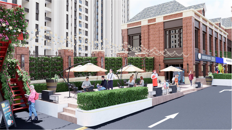 龗龍街汲取地域特征靈感,將設計風貌與場地內的建筑風格相協調,融合綠色、多元、人性的設計理念,使空間排布更為有序。此次改造將大力進行綠化整改、垃圾回收系統的升級,為居民營造良好的居住休閑環境。