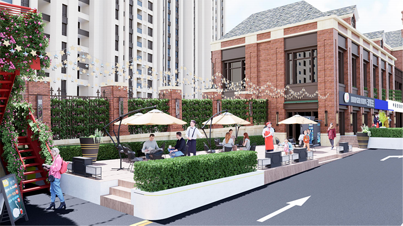 龗龍街汲取地域特征靈感,將設(shè)計(jì)風(fēng)貌與場(chǎng)地內(nèi)的建筑風(fēng)格相協(xié)調(diào),融合綠色、多元、人性的設(shè)計(jì)理念,注重文化注入,以人情味、煙火氣的景觀營(yíng)造給予人們返璞歸真的生活體驗(yàn),提升生活環(huán)境,升級(jí)商業(yè)能級(jí)。升級(jí)改造之后,預(yù)留更多活動(dòng)空間,為居民制造更多獨(dú)特而有創(chuàng)意的活動(dòng),營(yíng)造健康向上的生活方式,承載居民的情感訴求,帶來家門口有溫度的“情感鏈接場(chǎng)”,實(shí)現(xiàn)和諧共生的美好愿景。