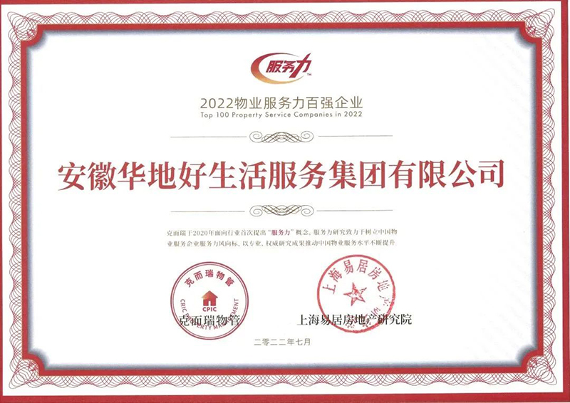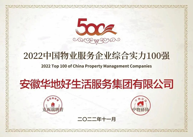 以卓越市場表現,強大品牌影響力,華地好生活集團榮獲2022年中國物業服務力百強企業TOP46、中國城市服務TOP10、中國物業服務企業綜合實力TOP70、中國寫字樓物業服務領先企業、國家科技型中小企業等諸多榮譽稱號。