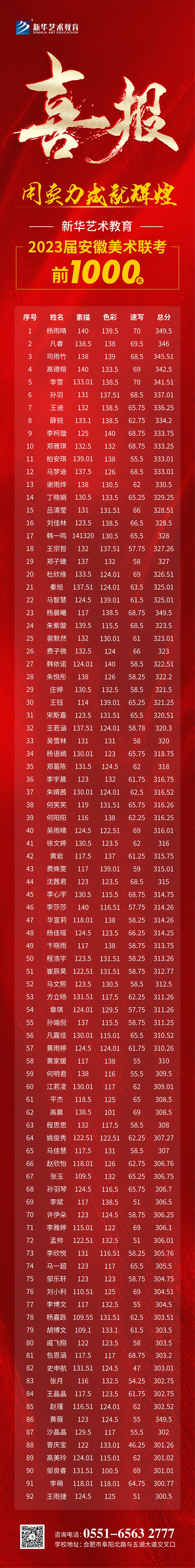 在2023屆安徽省美術聯考中,新華藝術教育以品質見證成長,在優秀師資團隊的共同努力下,我校學子不負華年,再創佳績!