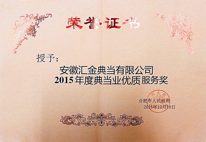 近日,合肥市人民政府發文《合肥市人民政府關于2015年度金融機構支持地方發展先進單位的通報》(合政秘〔2016〕103號),安徽匯金典當有限公司(以下簡稱匯金典當)憑借在地方經濟發展中所做出的突出貢獻,榮獲了“2015年度典當業優質服務獎”。獲此殊榮是地方政府及社會大眾對匯金典當的充分認可。