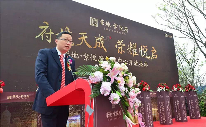 新華控股集團和華地置業(yè)集團領(lǐng)導(dǎo)出席開放儀式并剪彩,華地置業(yè)集團副總裁曹東生代表集團致辭。