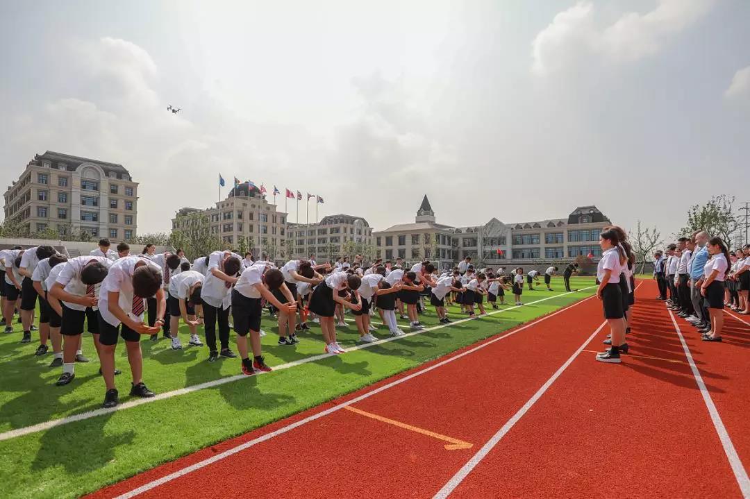 升國旗、奏唱國歌,在高亢嘹亮的國歌聲中,五星紅旗冉冉升起。伴隨著五星紅旗一同迎風飄揚的,還有新華公學校旗,新華控股集團司旗,一同見證著這一隆重而又莊嚴的時刻。