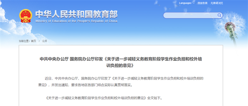 受到社會廣泛關注的重磅文件《關于進一步減輕義務教育階段學生作業負擔和校外培訓負擔的意見》(以下簡稱《意見》),7月24日由新華社全文公開。政策明確規定:各種校外培訓機構不得占用國家法定節假日、休息日及寒暑假期組織學科類培訓;同時要大力提升學校教學質量,老師應教盡教,確保學生在校內學足學好。“雙減”政策落地,旨在減輕學生過重的課業負擔,將教育回歸學校。