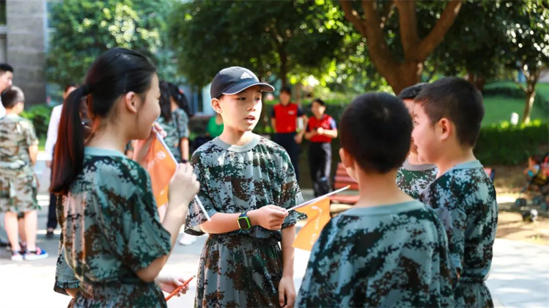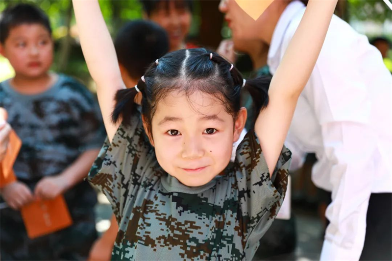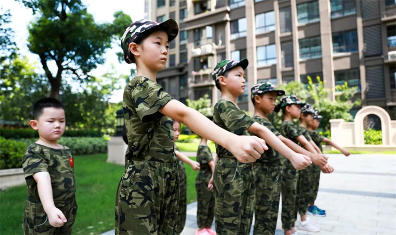 整齊劃一的“迷彩方隊”,無疑是今夏園區內最靚麗的風景線。堅定的眼神,挺直的身軀,展現了小小特種兵的颯爽英姿。