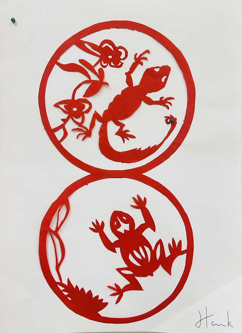 在進行剪紙教學時,教師會設計不同的特定的場景主題,使學生根據(jù)場景,對剪紙進行設計與制作,一來鍛煉學生的動手能力,傳承剪紙藝術;二來鍛煉學生的思維能力及解決實際問題的能力;三來學生根據(jù)相應主題剪紙創(chuàng)作,通過不同圖案體現(xiàn)不同寓意,讓視覺語言的運用能力得到有效鍛煉。