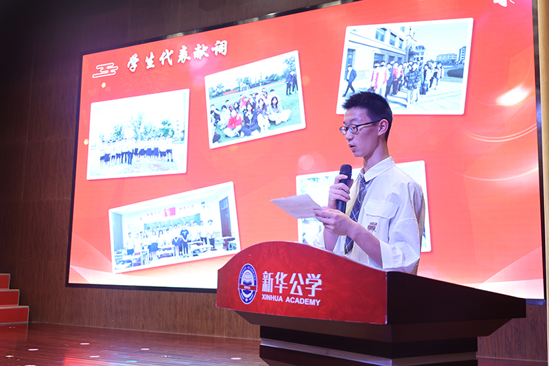 “感謝新華公學(xué)。我的母校您不但給了我們優(yōu)美的校園環(huán)境,過(guò)硬的教學(xué)設(shè)施和優(yōu)秀的師資隊(duì)伍,還教會(huì)了我們做人的基本準(zhǔn)則。我們從三年前那一個(gè)個(gè)稚氣的孩童,成為了今天蓬勃向上的青年,新華公學(xué)的精神已經(jīng)成為我們?nèi)松囊徊糠郑俏覀冞h(yuǎn)航的永恒動(dòng)力”