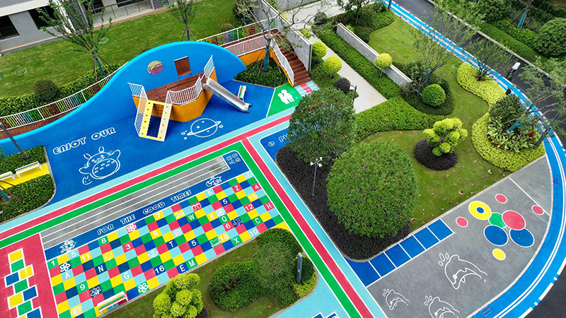 童享世界、陽光大草坪、健康跑道、趣味架空層等休閑活動(dòng)場地圍合居所,分布在社區(qū)各處,將運(yùn)動(dòng)、社交、成長等元素融入社區(qū)藍(lán)圖之中,人與建筑及場景在此相融,激發(fā)著你和孩子們的探索欲和好奇心。