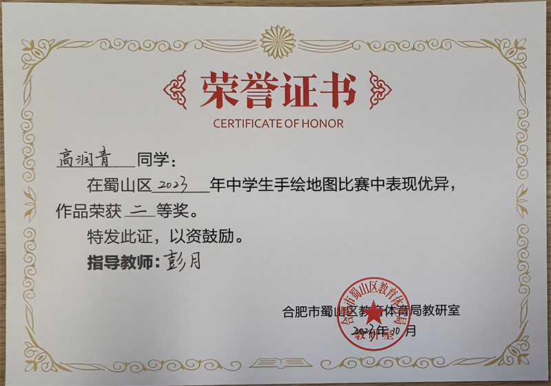 為了落實新課程標準,提升學生地理學科素養,增強學生的版圖意識,在國慶之際,蜀山區舉辦了地理學科2023年蜀山去中學生手繪地圖比賽。新華公學積極響應,參加了本次比賽并取得了優異成績。