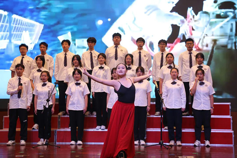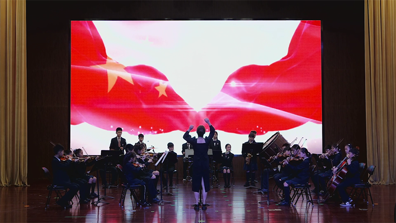 在英皇樂(lè)團(tuán)演奏《我的祖國(guó)》的悠揚(yáng)樂(lè)聲中拉開(kāi)活動(dòng)序幕 ,同學(xué)們興致昂揚(yáng),自信登臺(tái),展現(xiàn)了新華學(xué)子積極、優(yōu)雅的精神風(fēng)貌,每個(gè)節(jié)目都精心準(zhǔn)備,完美將致敬祖國(guó),熱愛(ài)祖國(guó)的情感呈現(xiàn),引得臺(tái)下觀眾陣陣掌聲。