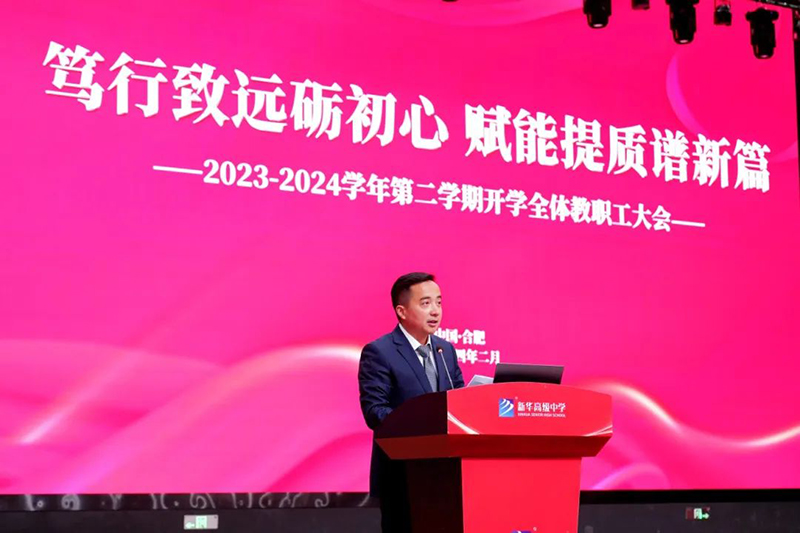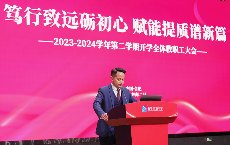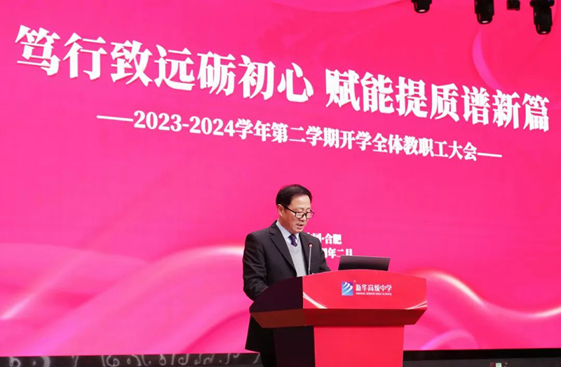 時序更替,華章日新。為進一步凝聚共識,統(tǒng)一思想,全力做好新學(xué)期各項準(zhǔn)備工作,2月19日上午,我校在文體中心報告廳召開新學(xué)期全體教職工大會,會議由新華高級中學(xué)黨政辦公室主任夏娟娟主持。全體教職工以龍騰虎躍的精神面貌,充沛飽滿的工作熱情齊聚一堂參加會議。
